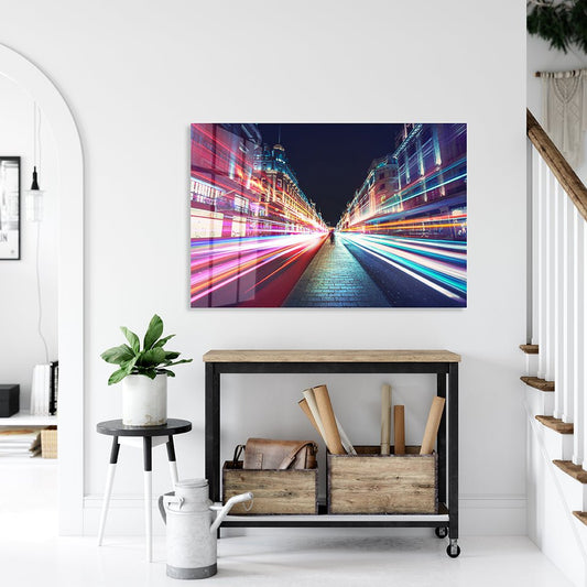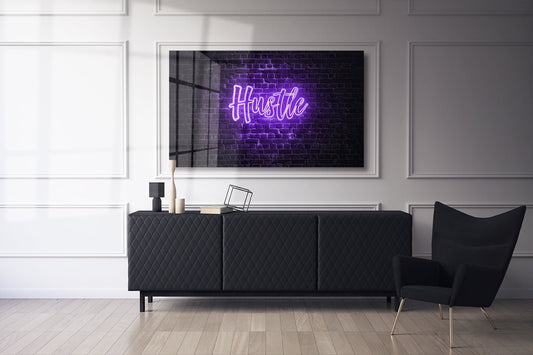 Inspirational Motivational Word Hustle in Purple Neon Light on Brick Wall