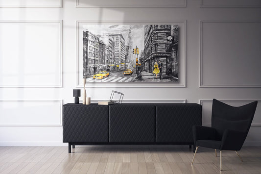Modern Artwork, New York in gray and yellow colors, illustration New York 3