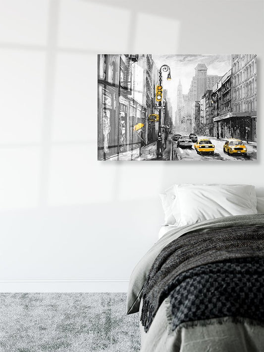 Yellow taxi, modern Artwork, illustration New York 2